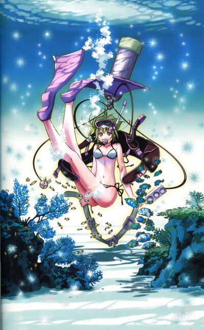 I want to know a lot about animation or cartoon related to scuba snorkeling swimsuit.