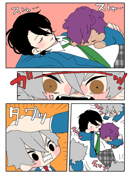 なんでテメ〜が朔間先輩とお昼寝してんだよ!っていうわんこ