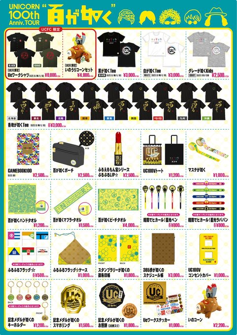ユニコーン100周年ツアー"百が如く"5/25(土)広島公演より、【UNICORN×adidas】Ucジャージダスと【UCFC限定】Ucワークシャツ ブラックverの追加販売がスタートっ❗ぜひぜひ会場でチェックを~~~💡