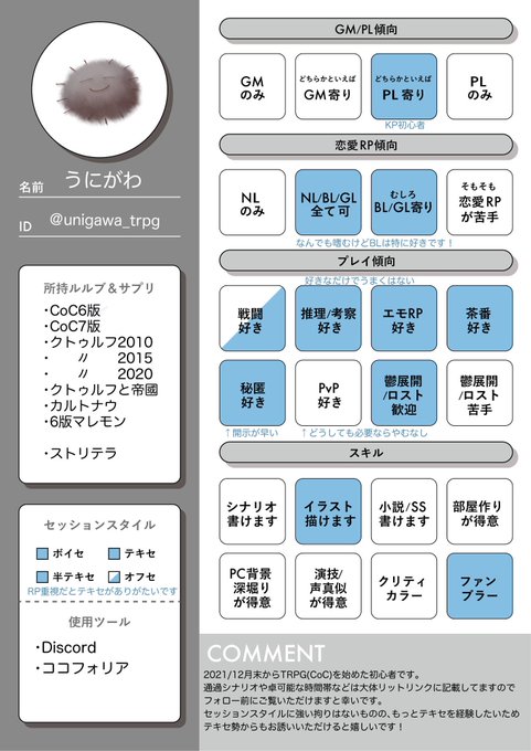 #TRPG自己紹介シート