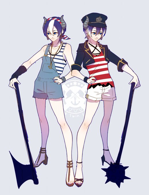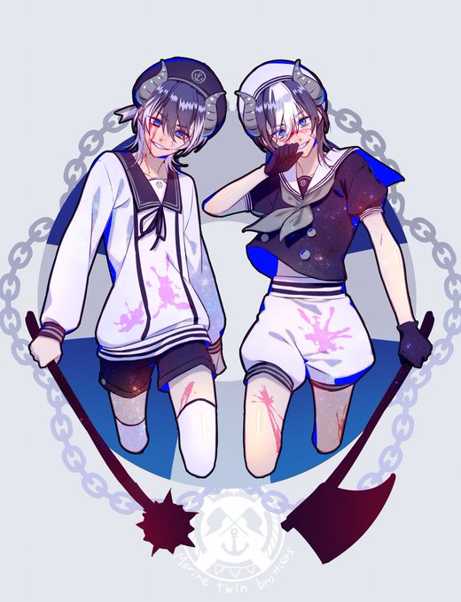 #繋がらなくていいから俺の絵を見てくれ キャラデザ練習に描いた角っこマリン兄弟