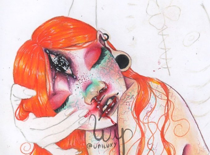 -Arte tradicional, papel, lápis de cor e tinta branca.