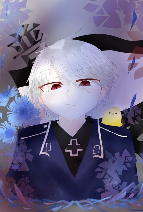 ヘタリアのプロイセン。 かっこいいプーちゃんが好きです。 次はもっとかっこよく描いてあげたい…お花はヤグルマギクだよ。