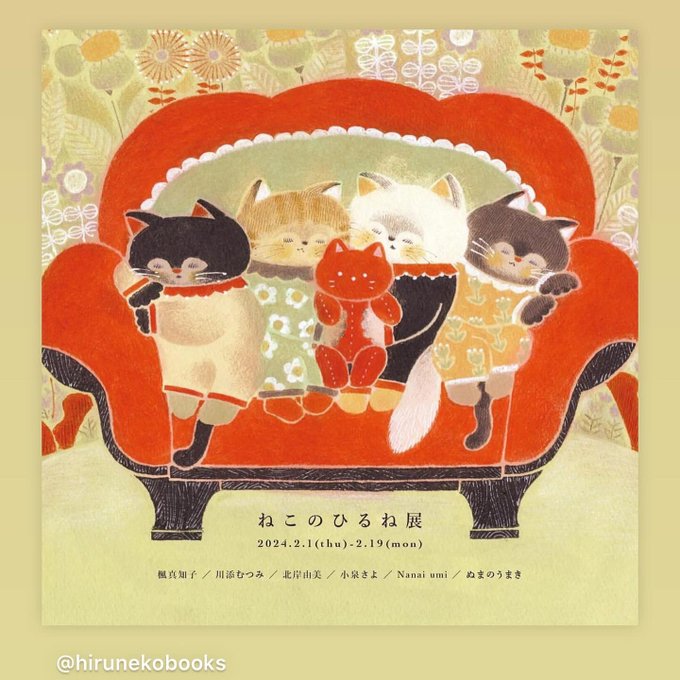 本日から2月19日まで ひるねこBOOKS様にて、 "ねこのひるね展"開催です! 6名が描き出す可愛らしい猫ちゃん達に 癒されに来てください☺️
