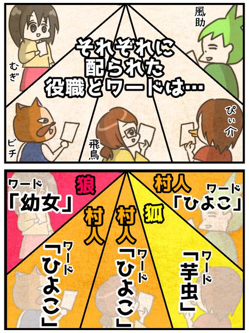 深夜テンションでやるワードウルフの楽しさ、語り継いでいきたい🗣(1/6) #ワードウルフ #プレイ日記 #漫画 #ルール説明 #狐あり
