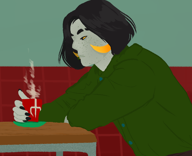 Mannna Nektan, She/They, Teal, Legislacerator in training who cheats on her exams with the help of ghosts