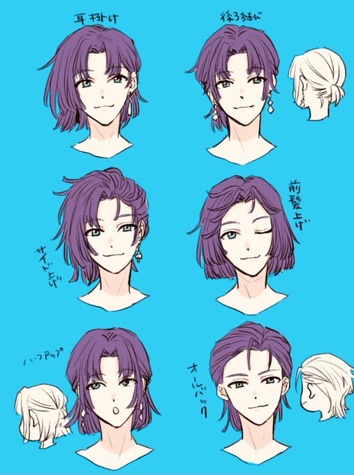 ムルちゃんとカイン君のヘアアレンジを黙々と考えてました…髪を結ぶ、下ろすが可能だからオールバックとかもありかも…?無限の可能性… #まほやく_FA