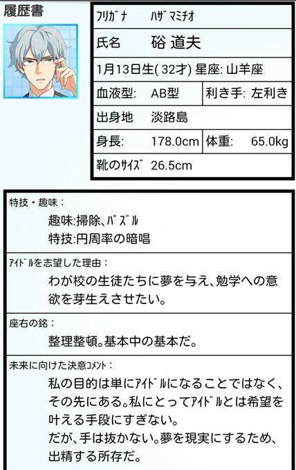 硲道夫。 元数学教師。アイマス界最年長(32歳)生徒を導くためにアイドルに。SEMの発端は彼。くっそ真面目だけどとにかく情熱がすごくてインテリというかフィジカル。