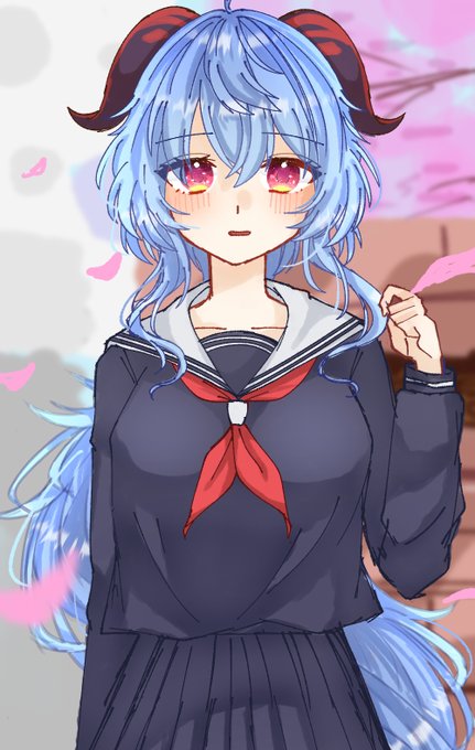 色ラフで力尽きたので置いときます…… 学パロセーラー服甘雨ちゃん🌸