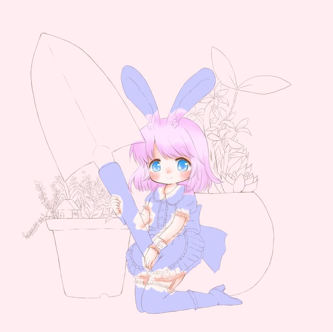 金髪&碧い目がめちゃくちゃ好きだしうさ耳も大好きだからこの絵は描いてて最高に楽しい😇✨ ただ、色見本と同じ色味でって思うのに、影とか付けてると段々色が濃くなってって雰囲気が変わってきちゃう…