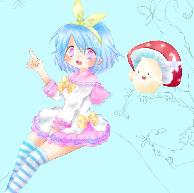 人物とキノコの妖精は塗り終わり!背景ものんびりがんばるー…!!