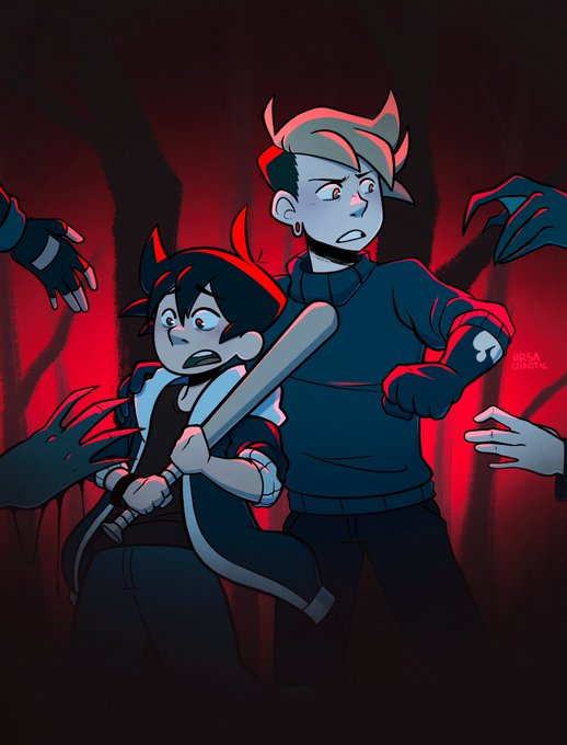 @acesincomics Hi I’m Mason! I’m an acearo comic artist and I'm working on Beneath the Woods, a supernatural horror comic about demons, found family and an interdimensional mystery involving a world-ending monster! 🌲👻
