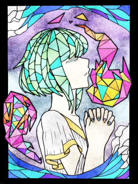 懐かしいオルゴールその2 これも一昨年の夏作ったやつですね、ΛSHES……相変わらずオルゴール感は無視した採譜😅 ステンドグラス絵もその頃スマホで描いたなぁ #PROMARE #LIOFOTIA #ΛSHES