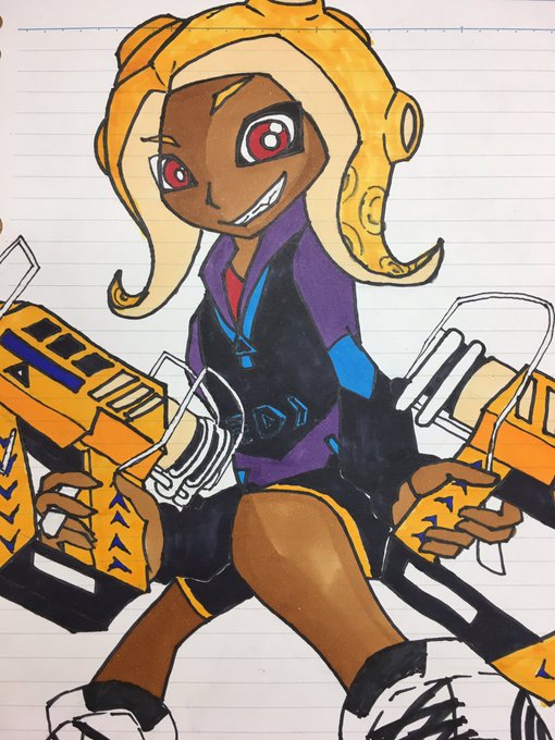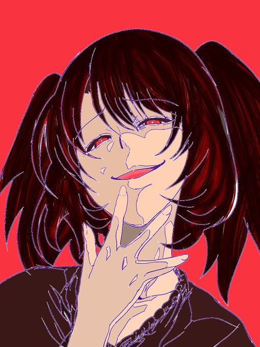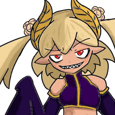 @EMK_ENE コイツです ・褐色肌 ・赤眼 ・ツインテール ・ギザ歯 ・目付き悪くて目の下にクマ 髪型はボサボサした長い髪をツインテールと後頭部でボサボサとまとめてる感じです 角はあってもなくてもいいです よければ後から詳しく解説したイラストを送ります