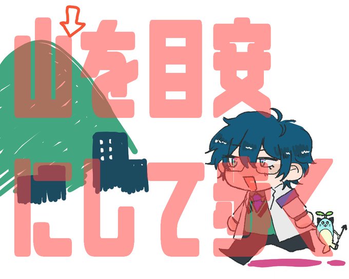 山を目安にして歩いて迷子になるの草 #まめねことレオス