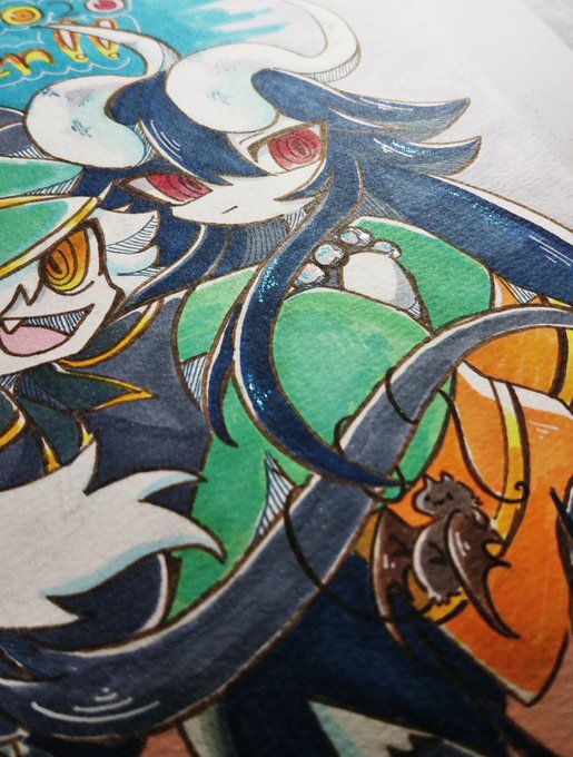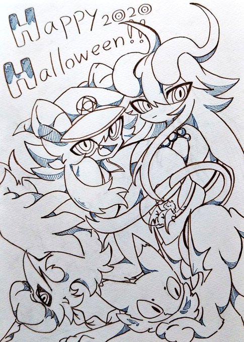 🦇ハッピーハロウィン!!!!!!🎃 黒い子ばっかり詰めたぞ!! キラキラペンを使ってみたのと、可愛かった線画も載せとくぞよ😪 #エテルノ_フィアーバ