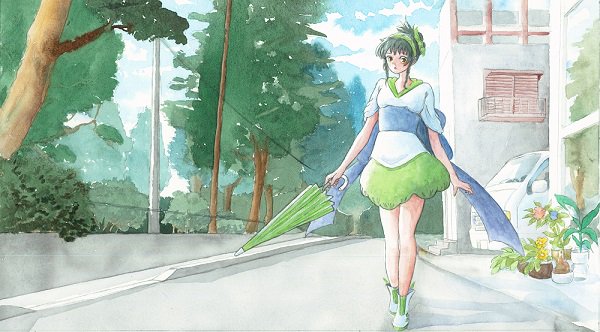 東北ずん子ちゃんです。以前描いていた落書きを完成させました(^^♪ #東北ずん子 #VOCALOID #透明水彩 #watercolor #水彩 #アナログ #蝶々
