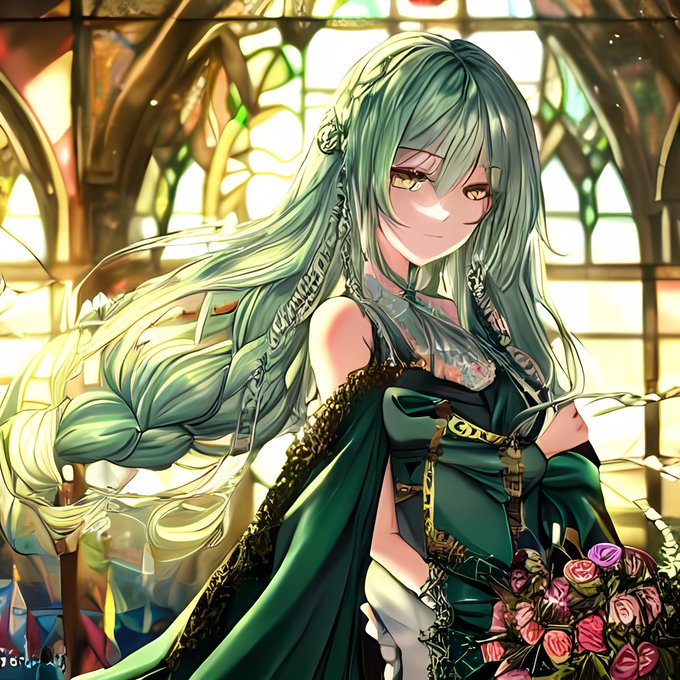 クリスマス→教会→ステンドグラスって事で、ステンドグラスを背景にして少女を描いてもらったよ~🎵