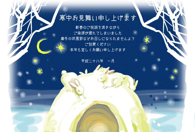 今年は実は喪中なので寒中見舞いを急きょ作ったんだけどそのデータがでてきた。即席だから完全なる私の趣味の色合いとモチーフである。