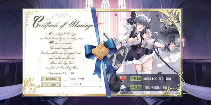 チェシャーとケッコンしました‼️