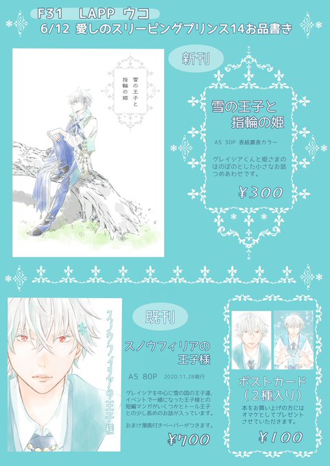 スリプリ14のお品書きつくりましたー。よろしくお願いします。 新刊と既刊とポストカード持って行きます。グレイシアくんばっかりです。