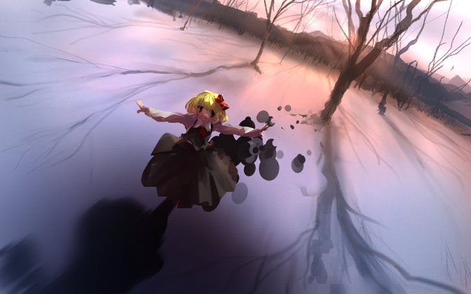 お題の「雪原+ルーミア」です