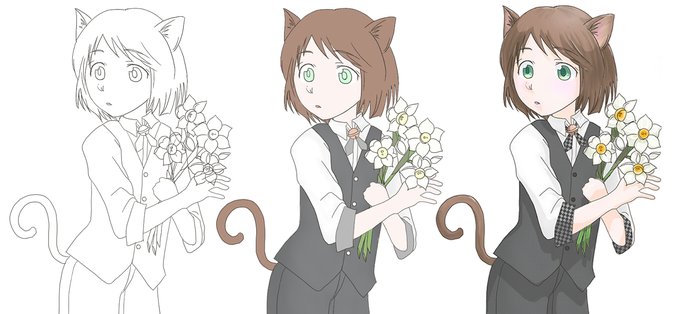 古代少年ラフ+🐈⬛ 猫耳少年の後ろにいたにゃんこズ。 #創作 #イラスト