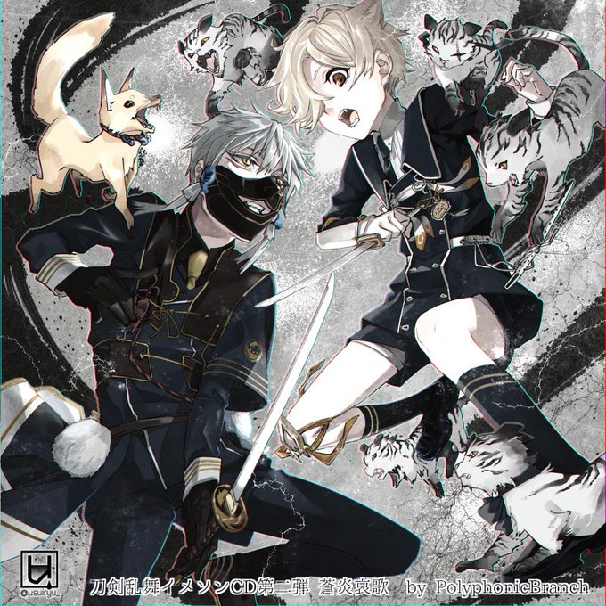 PolyphonicBranch(ぽりふぉ)さん主催の刀剣乱舞オリジナル楽曲のイメージイラストとして鳴狐と五虎退を描かせていただきましたー!ブックレットに載ってます