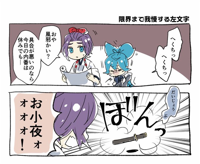 日常時も体調悪い時は刀に戻っちゃうのかな?という漫画(お小夜+歌仙)