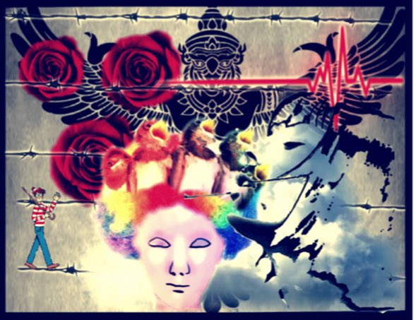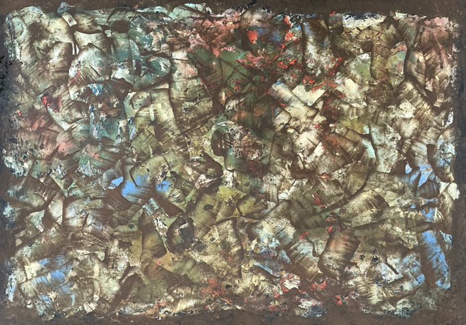 パネルに油絵具やらジェッソやら水性ペンキ、鉄粉などで作った作品です。