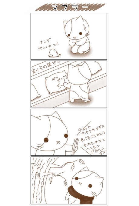 よくわからないことになってしまった。 「ラ」しか合ってない。 #pixiv今日のお題 #マフラー #sensei #ねこ #ぽちり #モグラ #枕 #オクラ