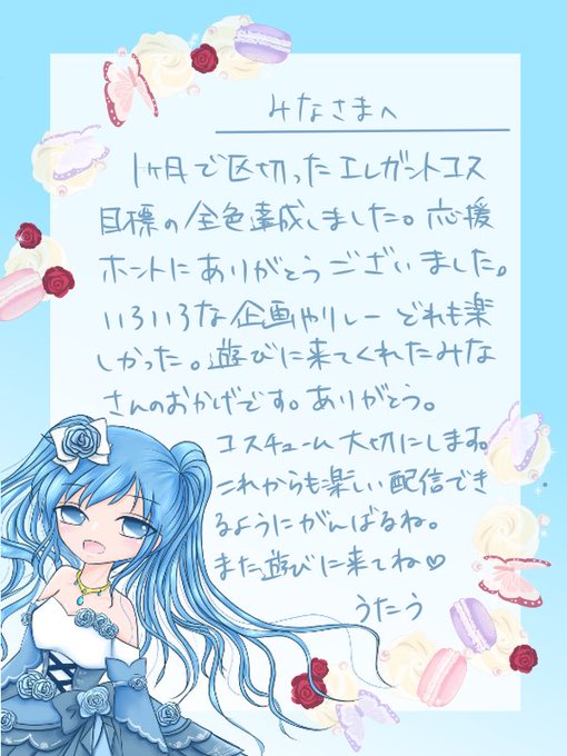 改めて、 エレコスイベント応援ありがとうございました✨ うたう的イベラスの天月さん全曲歌うのおわったよー🥳 遊びに来てくれる全ての皆様に感謝です。 これからも来てくれた方が少しでも笑顔になれる配信ができたらいいなと思ってます😌 お手紙よかったら読んでね😆💌 #カラオケ配信トピア