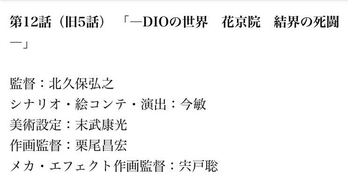 ジョジョ3部OVAの旧5話(DVD12話)はシナリオ・絵コンテ・演出が今敏回でワールド全開で面白いので今敏みが不足した時はたまに見返したりする…_(:3」 ∠)_旧作をスルメのようにしがむ…新作がなくて寂しいよう