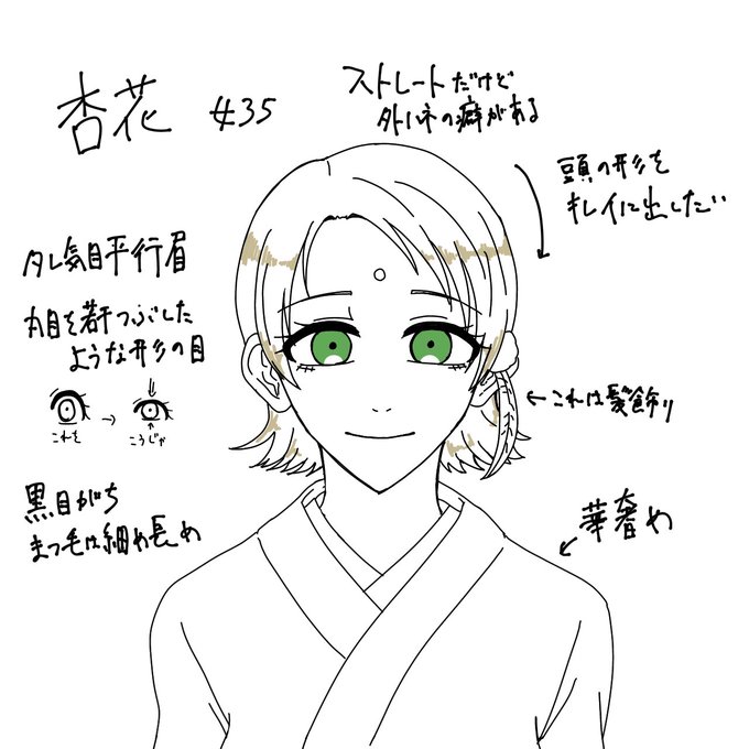 元グラの顔立ちを損なわないようにしつつ、おっとりとした人柄を反映した感じで描こうと努めています。地味に髪型も謎なんですけど、肩につくくらいの長さの髪を想定しています。