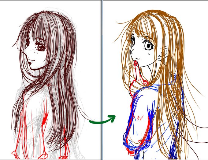 練習に「手癖全開でいいからサラっと描く」を始めたハズなのに、 「鼻を小さくしよう!」と思ったらドツボにハマって ずーっと捏ね繰りまわしてます・・・(悪い癖w)