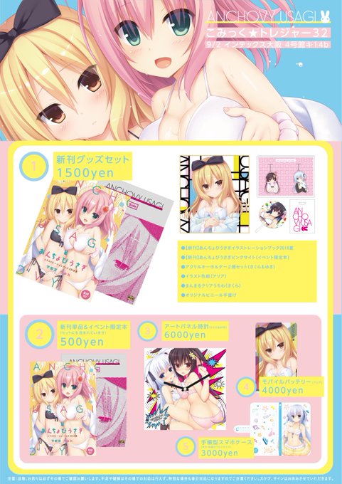 【こみトレお品書き】あんちょびうさぎは9/2に大阪で開催される「こみっく★トレジャー32」に参加致します!スペースは「4号館キ14b 」となります。お品書きも完成しましたので是非ご覧ください!