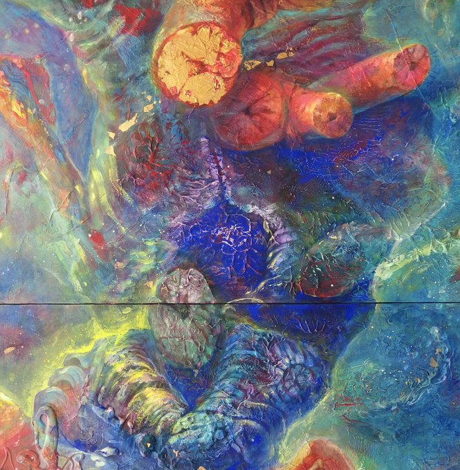 11/16からつくば美術館で作品展を開催いたします。大学の洋画・版画・日本画の院生19名で行う展示で私は大作2枚展示予定です。(画像は部分拡大)