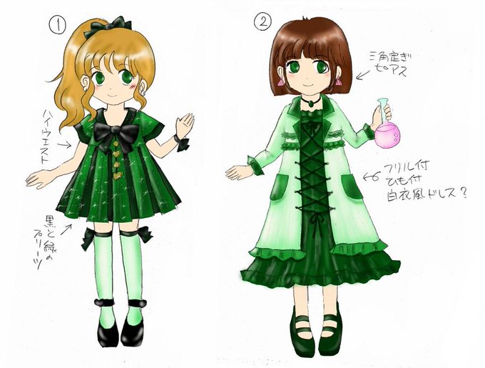 ミニ丈プリーツドレスと白衣風フリルドレス