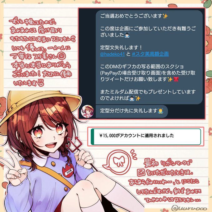 本当に本当にありがとうございます!ツイートでは書ききれないので画像で失礼いたします🎀