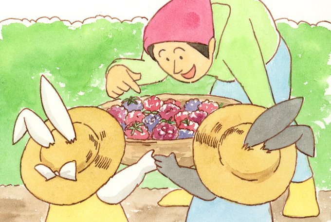 【遠くの双子 デイリースケッチ110】 あっ!うさぎの双子ちゃん!? 何を持ってきたかな〜?