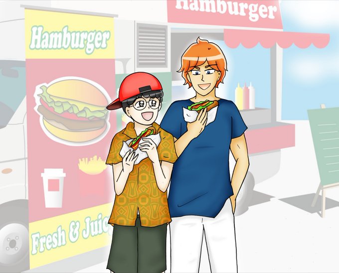 背景はお借りしました。持ってるのハンバーガーじゃなくない?😂
