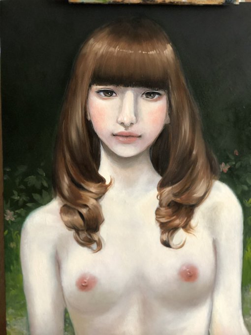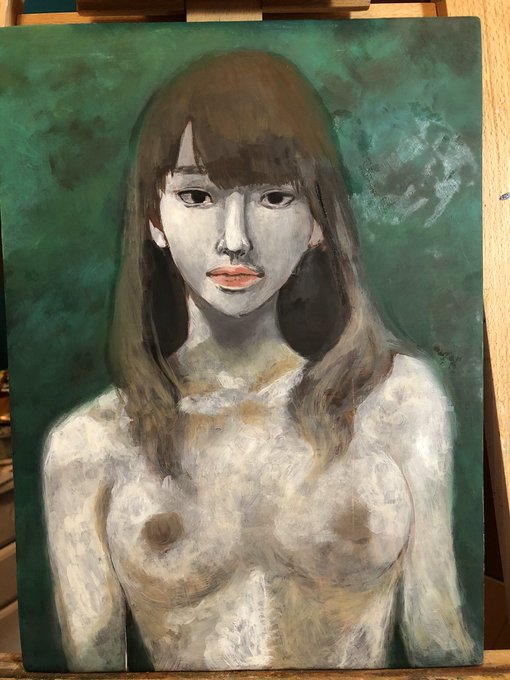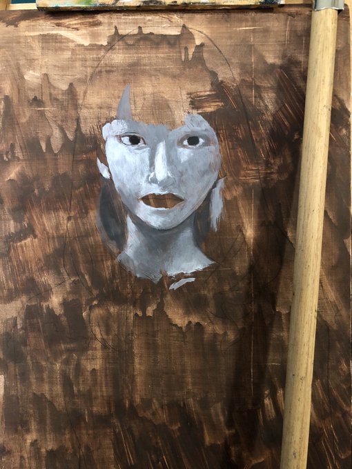 去年描いた油絵のメイキング パネルに吸収性の下地を作り、バンダイクブラウン的な茶色を塗ります。グリザイユで塗り塗りします。 色を塗り塗りします。 途中で髪型変更して塗り塗りして完成! #メイキング #油絵 #油彩画 #oilpainting