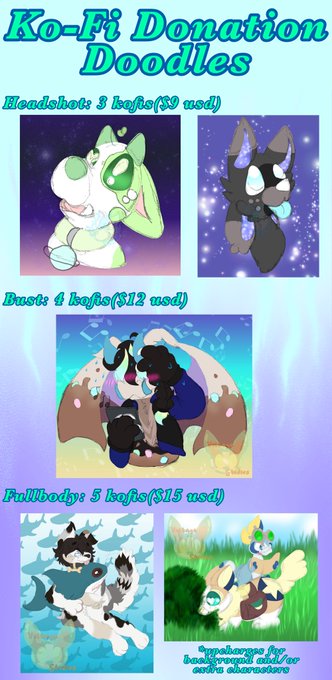 I wanted to make a cheaper alternative to my comms so I have donation doodles! Requests can be made in k0fi or you can DM me on here or discord!