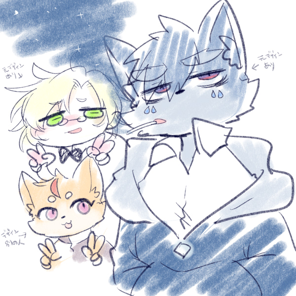 髪型普段と変わるのいいよね、かわいい服いいよね、みたいな話を聞きながら、ぼくもふりふりかきたい!ってなったのでらくがきしてました。 上のほう切り取ると可憐なのに下半身がガサツみたいなのかわいいよね。 #ケモVふりふり部