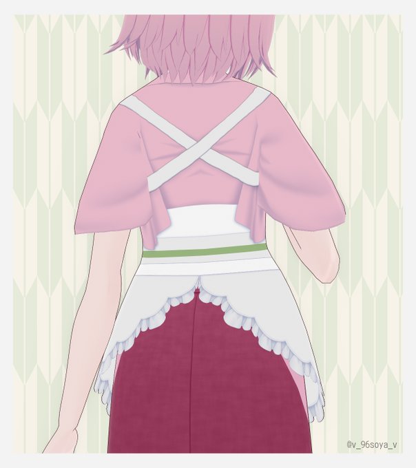 WIP!和カフェっぽいイメージの衣装 たすき掛けっぽく見えるように工夫した!帯をどうするか考えてる #VRoid
