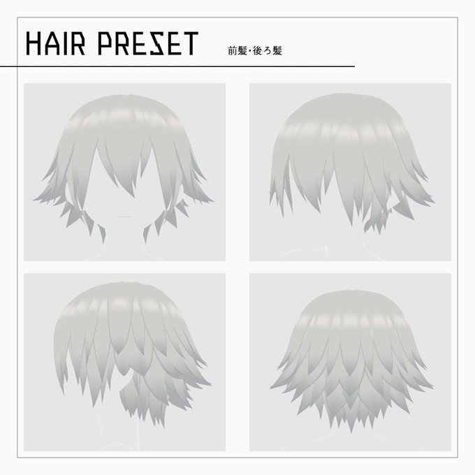 パーツ分けしたヘアプリセットと髪テクスチャが付いてます