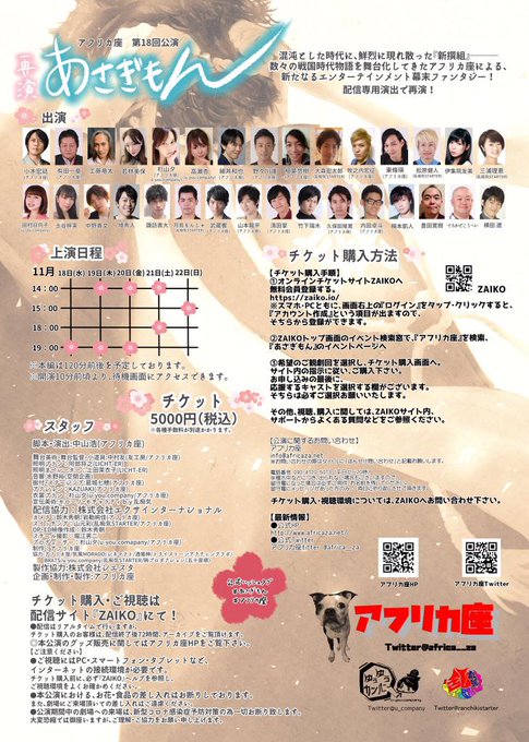#あさぎもん 本日19:00から、各回全て生配信で。