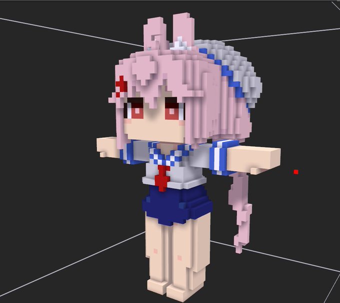 本日配信で作成させていただきましたボクセルモデルは「兎鞠まりちゃん」!どの衣装で作るかは悩みましたが…今が旬のスク水セーラーの方を作ってみました…!勝手に話題にあげた挙句、こんなん出来ました…許してまりちゃん… #まりあーと