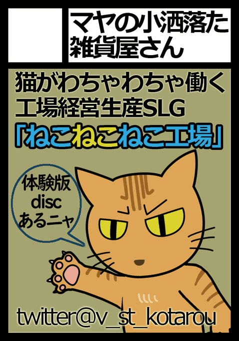 工場経営シミュレーション「ねこねこねこ工場」の体験版ディスクと