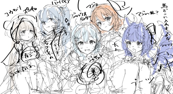 あたり描いてみた 衣装によってポーズとか髪型は変えると思うけど… ぶいぱいは公式のイメージに合わせてバンパイア系で統一するか、みんな違うコスでわちゃわちゃするか悩む